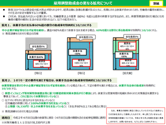 雇用調整助成金の特例措置の更なる拡大方針が発表されました。